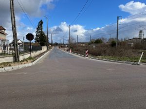 La pose des bordures caniveaux a repris le 12 janvier. Elle progresse au rythme de la météo qui n’est pas toujours clémente.
